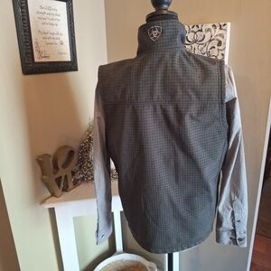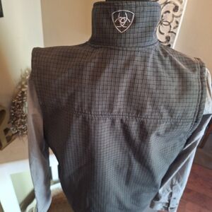 Ariat Men's Gray Plaid Like Zip Up Vest Warm Lining Sz Small