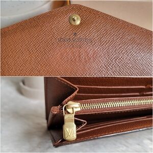Stylish Louis Vuitton wallet. Iconic monogram pattern. Includes elegant gold chain strap.