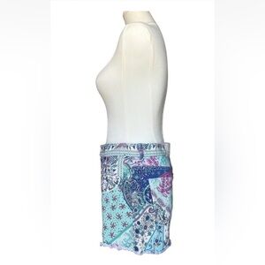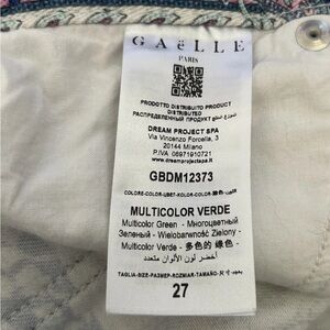 Add a burst of color and texture to your wardrobe with these eye-catching Gaëlle Paris women’s shorts. Featuring a vibrant paisley patchwork print in teal, pink, purple, and cream tones, these high-fashion shorts are perfect for summer festivals or vacation wear. The frayed hem and oversized logo patch on the back add edgy designer detail.