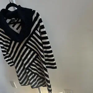 White House Black Market Women's Black White w/Gold Shimmer Cowl Sweater Sz M
