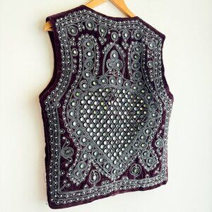 The Chaus Woman Embellished Embroidered Ethnic Burgundy Velvet Vest M