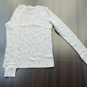 Chic and comfortable long sleeve top. Subtle floral design. Ideal for casual outings.