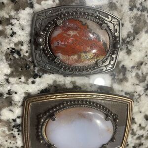 Vintage Style Decorative Buckle Set - Red and White Agate
