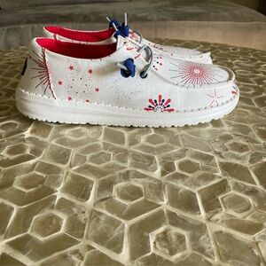 NEW! Hey Dude Women's Wendy Slip-On in ‘White Fireworks’