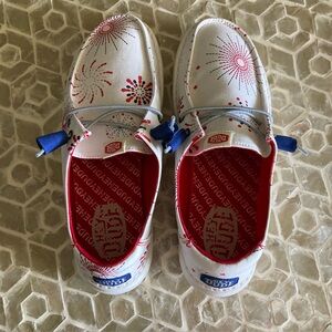 We’re bringing all the patriotic vibes with these HEYDUDE Women’s Wendy Americana Firework Print Shoes in White! These adorable women’s shoes feature a fun American firework pattern, Flex & Fold technology, and a slip-on silhouette. Add these to your HEYDUDE collection today!