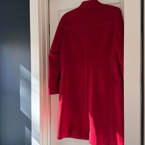 Stay warm and stylish with this elegant red women's coat. Perfect for the holidays.
