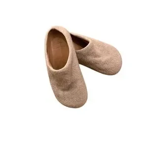 Lauren Manoogian signature 'Mono' mule slippers in natural, handcrafted in brushed alpaca and wool. Features a round toe with a cork footbed. Leather sole and lining in tan leather.