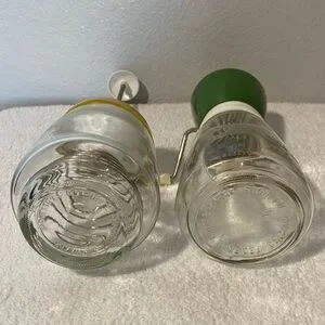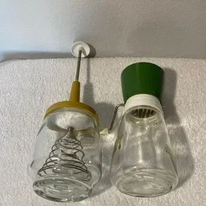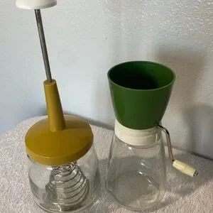 The Vintage Federal Housewares Nut Crusher and Whisk Beater set from the 1960s is a collectible kitchen tool perfect for all occasions. Made of glass, this original piece from the United States includes a container/jar for easy storage and use. With its unique design and brand, this set is a great addition to any kitchen, especially for those interested in vintage kitchen items. The nut chopper is versatile for crushing nuts and making meal prep easier, while the whisk beater can be used for a variety of food items.