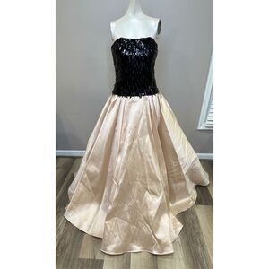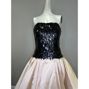 NWT Pamella Roland Mixed-Media Sequin-Embroidered Gown Blush Black Size 10 $4895