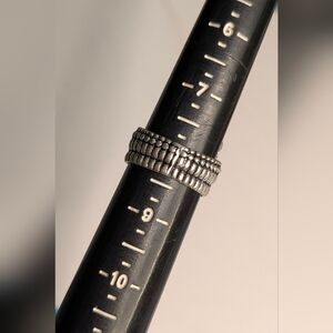 It has a substantial, wide 'cigar band' with a distinct ribbed pattern for comfort and style. The setting is Silver-Filled and 925 stamped, so you get a great quality ring at a much more accessible price. Keep your ring away from water, beauty products, cleaning chemicals, and remove before sleeping, showering, washing hands, and it'll last you many years, if not your lifetime. When not wearing, put your ring in an airtight bag/container, like the thick plastic baggie it will be shipped in.