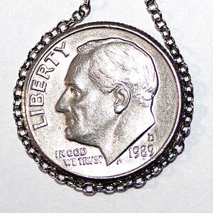 Chain measures 18 inches length, pendant when nestled together measures 3/4ths of an inch length and 3/4ths of an inch wide.