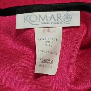 Komar Womens Vintage 1980s Red Long Robe Black Trim Glam Power Lounge Sash Tie