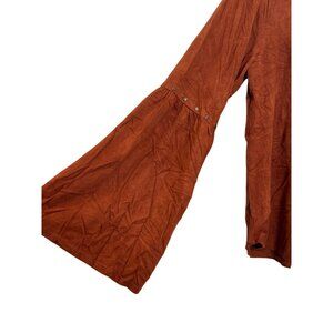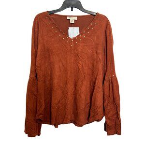 Style & Co Petite Womens Bell Sleeve Top Size PM Rust Studded V-Neck Polyester B