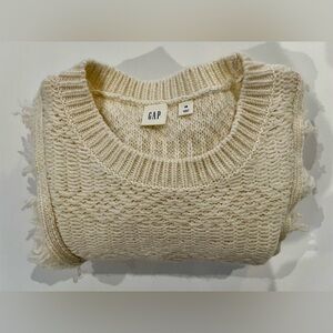 GAP Wool Blend Cable Knit Frilly Cream Fringe Extra Small Sweater
