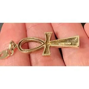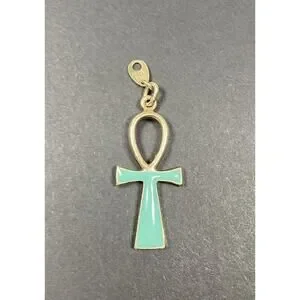 Vintage 1970’s Gold Plated .925 Sterling Silver Ankh Pendant Cross Italy Enamel. This is in very good gently used preowned condition. This was made in Italy in the 1970’s by a prominent jewelry maker 3 Erre di Riamondi Remo & Roberto S. d. f. in Torri Di Quartesolo, Italy. It is signed by the jeweler on piece and maker tag with 925 Italy, a star ⭐️ , 613 VI. It has a soft gold plating along with a turquoise colored enamel. Very beautiful piece. Please message me prior to purchase with any questions. Thank you!