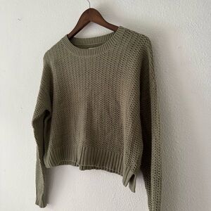 Aeropostale Drop Shoulder Sweater Medium Crew Neck Relaxed Fit Sweater Knit Ribbed Trim Olive Green Khaki Neutral Cozy Casual Everyday Boho Minimalist Layering Transitional Trendy Knit Oversized Cropped Comfy Streetwear