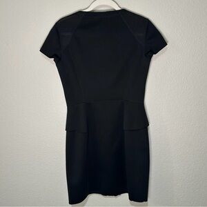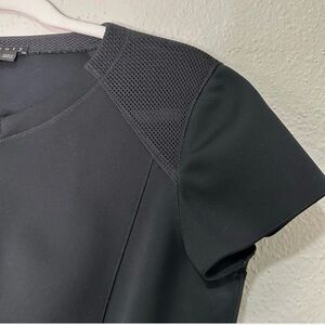 Theory mini neoprene dress, front zipper, round neck, mash panels accents the shoulders.