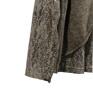 Women’s Tempo Paris Gray 100% Wool Open Front Lace Cardigan Floral: Small