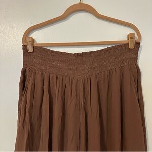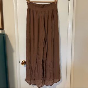 Sundance Smocked Waist Flowy Wide Leg Pants Womens Brown