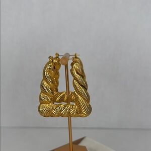 Add a touch of elegance with these stunning gold twisted hoop earrings. Perfect for any occasion.