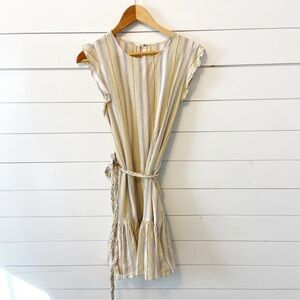 Marine Layer Laney Beachy Stripe Linen Blend Dress W/ Braided Waist Rope Medium