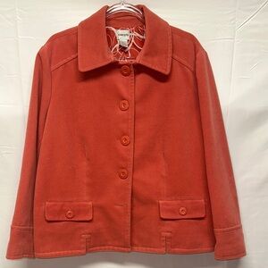 Stylish coral jacket by Chico's. Features classic button design and elegant collar.