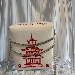 Chinese Take-Out Purse! White and Red Pagoda Crossbody Bag with Gold Chain Strap