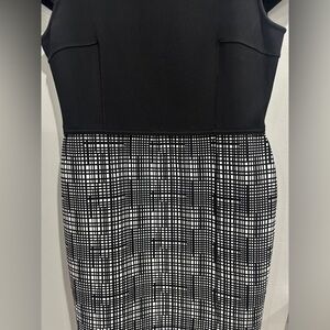 St. John Collection Luxe Sculpture Knit Cap Sleeve Dress-Caviar Size 12. No material tag, but viscose and polyester blend. Thicker feel to the material. Has a decent amount of stretch to it. Excellent condition. Work once, but like new condition! Zipper down back.