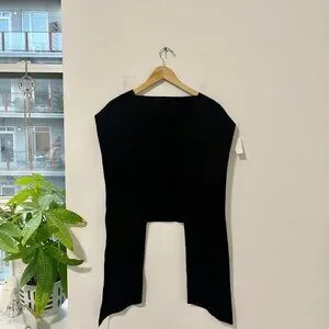 NEW Ixos Gilet Black Rafaello Top One Size. New with tags NWT. Solid black. Unique top/sweater with cutout back. Raw hem. Can be worn many different ways and great for eclectic styles!