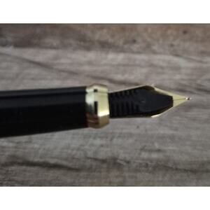 The Iridium Point Germany Vintage Fountain Pen is a classic and elegant writing instrument with a medium-sized stainless steel nib and black ink. It features gold trim accents and a plastic material construction. This vintage pen exudes sophistication and nostalgia, making it a sought-after collectible for pen enthusiasts and collectors alike. Its timeless design and high-quality craftsmanship make it a standout piece for anyone looking to add a touch of vintage charm to their writing experience.
