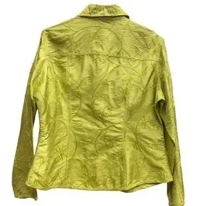 Chico's Green 100% Silk Embroidered Button Jacket Top Sz 1 (S)
