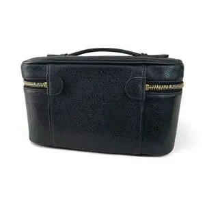 A rare and elegant 1997 Chanel vanity case crafted in durable black caviar leather with an embossed CC logo.