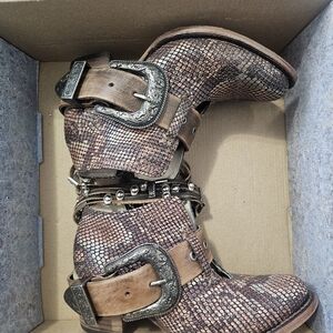 Freebird by Steven Snakeskin Ankle Boots with Brown Accents
