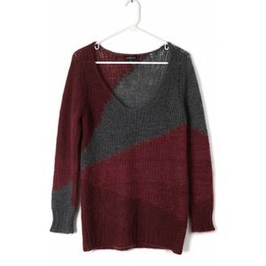 Eileen fisher womens small alpaca wool lightweight sweater burgundy gray super soft color block