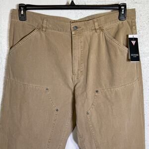 Two front pockets; two back pockets; GUESS triangle logo on back right pocket