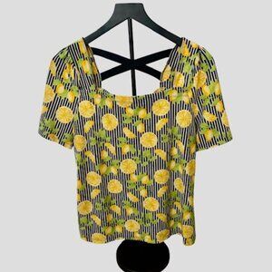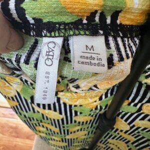 Cato Women's Medium Blouse Fruit Pin Stripes Lemon Motif Polyester RN37080