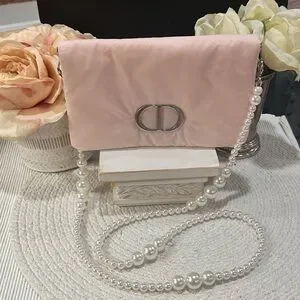 (Last one!!)Christian Dior Pink Clutch Bag with Faux Pearl Chain - NIB