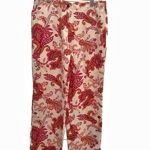 Stylish Liz Claiborne silk and linen blend pants with a vibrant floral pattern. Perfect for any occasion.