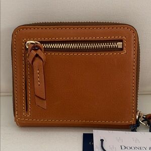Sleek Florentine natural leather wallet by Dooney & Bourke. Compact and stylish design. Smooth goldtone zipper glides smoothly to put cards & bills at your fingertips. Very elegant accessory for the smaller cross body bags. A luxurious gift & I promise they will love it! Comes in gift box. NWT