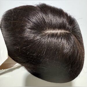 Brand new in box, full at the crown for a topper, nice, soft Real hair. The box says “Wispy Bangs” but they seem pretty full and long to me💁♀️. See pics and feel free to ask questions. Shade is Dark brown, almost black, no highlights. Need a boost at the top? Then this is for you! I ship every day.