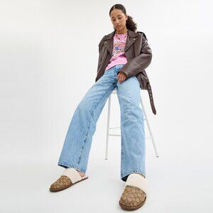 Signature jacquard upper Faux shearling lining and footbed Rubber outsole Slip on This Coach piece is crafted with our Signature jacquard made from a blend of regenerative cotton and recycled polyester Style No. CW740