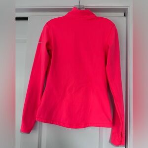 Great for running. Very gently used in great condition. It’s soft and stretchy and on the warmer side for cooler weather. The color is hard to capture but it’s a really pretty salmon pink. It is bright which is why it may not photograph exactly. The pictures are pretty close though.