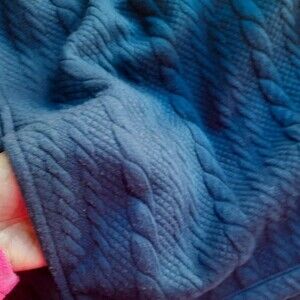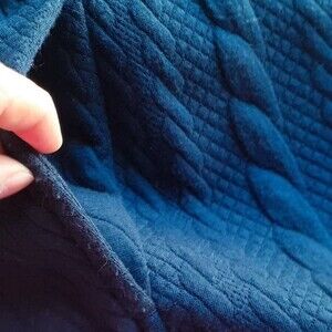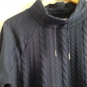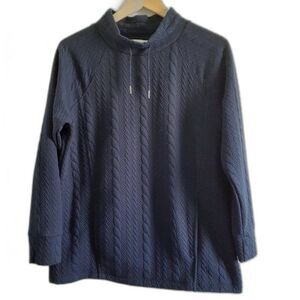 VTG. Liz Claiborne Navy Drawstring Kangaroo Pocket Cable Mockneck Sweater M