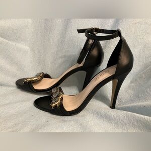 Aldo Black Heels Pumps Leather with Jewels Size 9