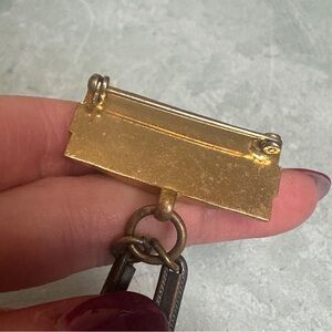 Elegant vintage brooch featuring a gold-tone design with turquoise accents. Perfect for adding a touch of sophistication to any outfit.