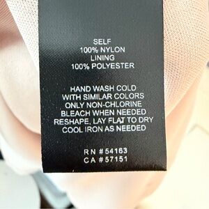 Charming midi dress with delicate floral embroidery. Peach base with yellow and green accents. Sleeveless with sheer overlay.