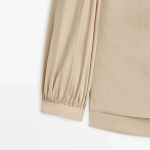 NWT. Massimo Dutti Beige Gathered Mandarin Collar Shirt. Size XS.