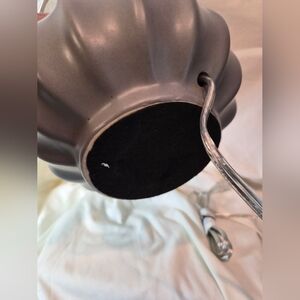 Stylish lamp with a textured gray base. Complements any decor with its cream shade.