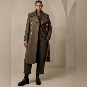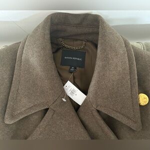 Banana Republic Cian Melton Great Coat M Olive Green NWT Gold Buttons Wool Blend