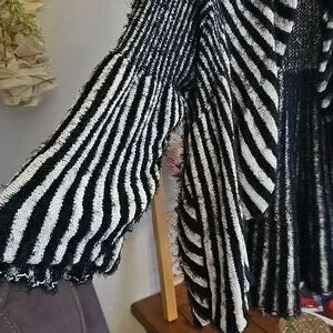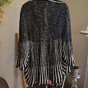 Like new Chico's sweater cardigan, shrug in tan and black design. Flared sleeves. Goes perfect with anything. Chico's size 2 is 10-12. Pet free, smoke free.
